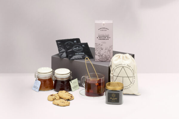 After an early morning stroll what better way to relax than with the Winter Morning Gift Box? Featuring Life & Soul Colombia Coffee Brew Bags, a jar of Alchemy Tea Albion Breakfast Blend loose tea and gold tea infuser, a premium Strawberry Jam, Breakfast Marmalade and a packet of luxury Cranberry & Oat Crumble Biscuits. Cup and Saucer not included.